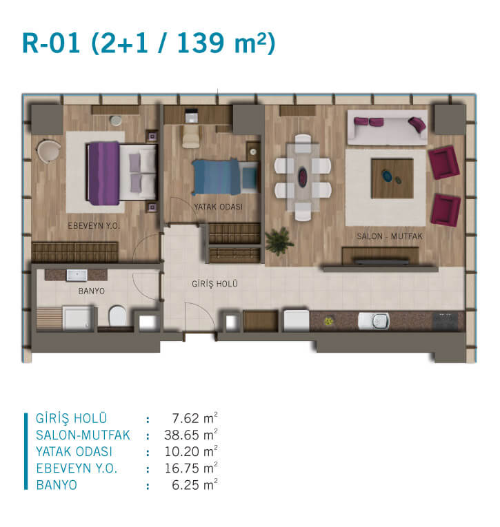 | واحد 2 خوابه | 139 - 109 m2 | 6،328،000 لیر | 14،007،000 لیر |