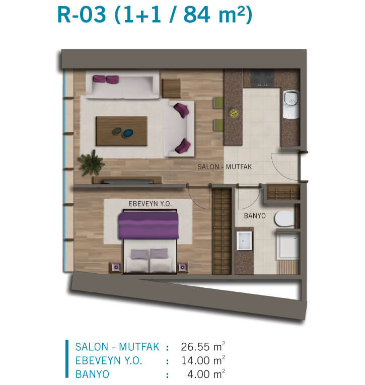 | واحد 1 خوابه | 84 -73 m2 | 3،180،000 لیر | 6،723،000 لیر |