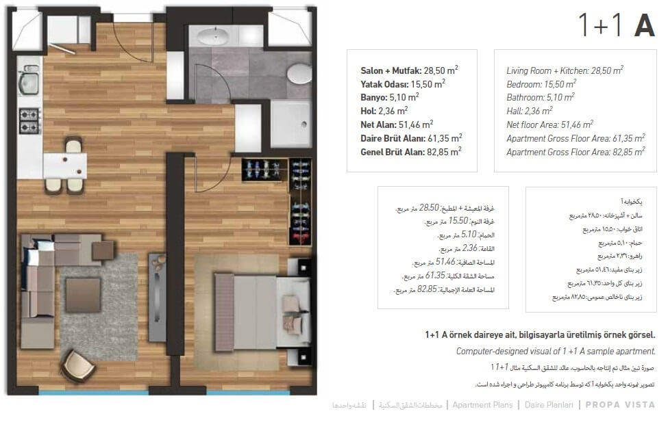 In the vicinity of schools, universities, hospitals and shopping centers, the distance to Sabiha airport is 12 km, the distance to the beach is 3 km, special and modern architecture, with residential and office units and a shopping center, all facilities are located in your sub-unit.