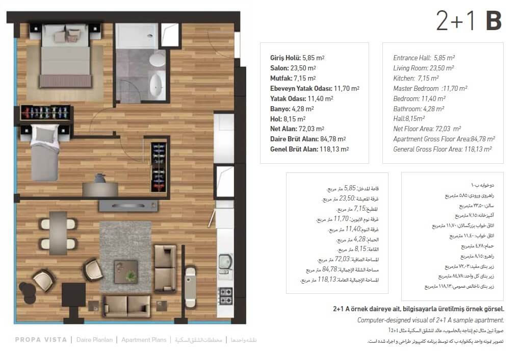 | 2 bedrooms | 118 - 130 m2 | 250،000 $ | 300،000 $ |